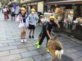 鹿とたわむれている姿をご覧ください。