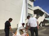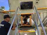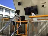 震度7まで地震の揺れを体験することができる防サイくんに乗りました。 正座をする...