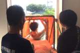ここが、避難袋の入り口です。すこしななめになっているため、怖いのか、それとも安...