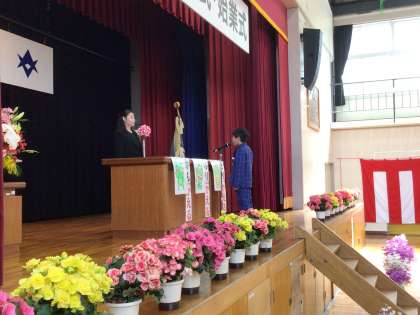 4月8日に入学式・始業式を行い、24名の新1年生が九久平小学校に仲間入りしました。1年生は担任の先生に名前を呼ばれると、みんな大きな声で返事をすることができました。1年生を迎えることばを述べた代表の6年生、誓いのことばを述べた代表の1年生も、堂々とした姿で上手に話すことができました。進級認定では、最初の6年生の素晴らしい返事にならって、どの学年もよい返事が体育館に響き渡りました。また、校長式辞のなかで「3びきのカエル」の話をしました。自分で「かんガエル」ことで、どうしたらよいのかわかるようになる、「ふりカエル」ことで、自分や友達を大切にでき自分のことがわかるようになる、「きりカエル」ことで、時間を大切にでき楽しい時間を作れることを全校児童に伝えました。