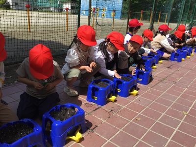 5月7日(水)の1,2時間目に、1年生みんなであさがおの種をまきました。これから、毎日水やりをして育てていきます。どんな芽が出て、何色の花が咲くか、みんな楽しみにしています。