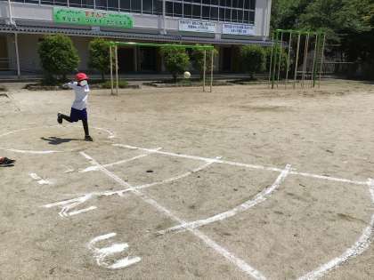 青空の中、体力テストをしました。この日までに、速く走る方法やボールを遠くに投げる方法などを考えて練習を重ねてきました。今日はどの子も精一杯やることができ、好記録がでて満足そうでした。