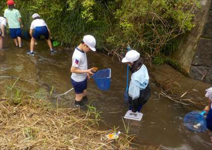 4年生生き物調査 公開日 2025/05/27 更新日 2025/05/27 各学年から 先週金曜日、4年生は近くを流れる滝川へ行き、生き物調査をしました。最初に2日前に仕掛けたわなを引き上げたところ、小魚やエビがかかっていました。魚は素早いのでなかなか捕まえられませんでしたが、タモ網や釣りなどで捕まえることができました。捕まえた生き物は写真を撮ったので、今後、名前や生態を調べていきます。