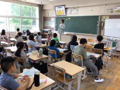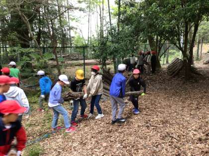 4年生 しいたけ本ぶせ 公開日 2025/05/28 更新日 2025/05/28 各学年から 昨年度の4年生が菌打ちし、仮ぶせしてあったしいたけの原木を、風通しの良い場所に設置する「本ぶせ」の作業を行いました。最初に教室で豊田加茂農林事務所の方から、本ぶせの意味やきのこ全般のことに教えてもらい、その後、しいたけ園に移動して原木を移動させました。原木はとても重いので2〜3人で運びました。秋にはしいたけが生えてくるそうなので、収穫が楽しみです。