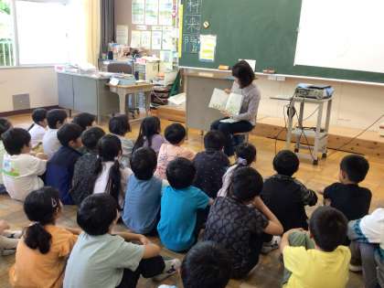 5月28日(水)、地域学校共働本部の読み聞かせボランティアの方に、今年度最初の読み聞かせをしていただきました。絵本を食い入るように見ながら静かに聞いている学級もあれば、絵本からの問いかけに声を出して楽しそうに答えている学級もありました。どの学級も絵本の世界に入ってお話を聞く姿が見られました。今年度も月1回、読み聞かせをしていただく予定です。