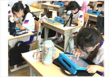 夏休みを前に、家庭で安全に学習用タブレットや家庭の情報機器を使うための注意点などを確認しました。まずは、学校から持ち帰った学習用タブレットは学習の目的以外に使わないことを確認しました。さらに、家庭の機器であっても、Web上にある広告アプリをダウンロードしないことや、自分や家族の個人情報をむやみに入力しないこと、掲示板に書いてはいけないことなどを他校の取組を参考にして学習しました。安全で楽しい夏休みを過ごしてほしいです。