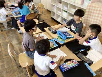 2年【生活科 おもちゃ作り計画中】 公開日 2025/09/16 更新日 2025/09/16 各学年から 生活科「楽しさひろがれわたしのおもちゃ」の学習で、身近にあるものを使っておもちゃ作りに挑戦中です。作りたいおもちゃを、本やタブレットを使って調べ、必要な材料を集めています。グループでおもちゃ作りに必要な材料や作り方を、熱心に話し合っています。さて、計画したおもちゃは、上手く作れるかな?