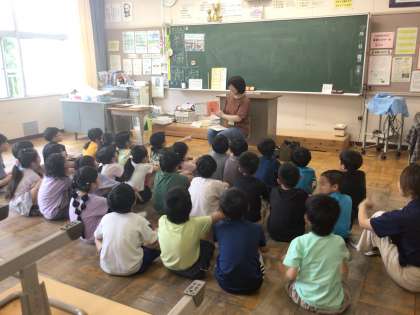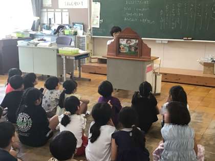 読み聞かせをしていただきました 公開日 2025/09/19 更新日 2025/09/19 学校行事 9月17日に、地域学校共働本部の読み聞かせボランティア「ちごゆりの会」の皆さんに読み聞かせをしていただきました。大きな絵本や紙芝居舞台の登場に、子どもたちは喜んでお話を聞いていました。10月22日に、地域学校共働本部で「絵本の読み聞かせ 基礎講座」を開催します。保護者の方だけでなく、地域の方も参加できます。詳細をお知りになりたい方は、学校までお問い合わせください。