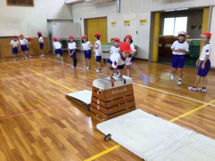 【2年】跳び箱頑張っています! 公開日 2025/10/01 更新日 2025/10/01 各学年から 体育科「跳び箱あそび」の学習で、さまざまな技に挑戦中です。跳び箱を跳ぶには、「踏み切り」が大切であることを学び、踏み切り板を使い繰り返し練習を行っています。そして、「跳びのり」「またぎのり」「開脚跳び」「横跳びこし」と難しい技が成功出来る子が増えてきました。友達同士教え合い、高め合う姿が頼もしいです。
