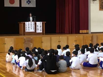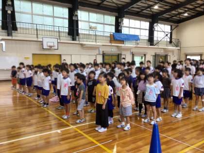 10月10日、全校児童が体育館に入って前期終業式を行いました。校長先生の話では、素晴らしいことをしても誰にも気づかれないヒーロー、「アンサングヒーロー」について話がありました。日々の生活の中で見つけた子どもたちの行動を紹介ながら、九久平小学校にもたくさんのアンサングヒーローがいることや、「自ら求める子」を目指してなりたい自分の姿に向かって互いに支え合うことで、自然にアンサングヒーローが生まれてくると子どもたちに伝えました。最後は全校児童で校歌を元気に歌いました。教室にもどると、担任の先生からは前期の頑張りを認める言葉かけとともに、一人一人に前期の通知表が手渡されました。3連休が明けると後期が始まります。それぞれが新たな目標に向かってがんばってくれることと思います。