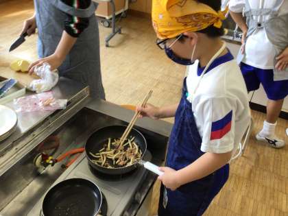 子どもたちは旬の食材を調べるところから始めて、調理の計画から実際の調理まで、全部自分で考えて取り組みました。計画通りに上手くできなかったり、火加減を間違えて少々焦げてしまったりする子もいましたが、完成するととても満足気な表情をしていました。