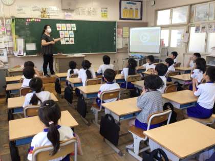 2年生ではALTと英語の勉強をしました。ALTは主に5・6年生の外国語科、3・4年生の外国語活動のときに担任と共に授業をしています。1・2年生でも年間4,5回程度、ALTと楽しく勉強をします。