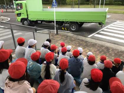 4年生は自転車の安全な乗り方を学ぶため、交通安全学習センターへ行きました。最初は、自動車の死角について教えていただきました。特に大型車には、自転車が全く見えない所があり、内輪差もあることから巻き込み事故の危険性が高いことが分かりました。次に、実際に自転車に乗って、交通ルールや安全に気をつけることなどを学びました。最後は室内で、交差点での危険予測や自転車の点検などについて学びました。天候が心配されましたが、予定された内容が全て学習できてよかったです。今後、自転車に乗る時には、今日学んだことを思い出してほしいです。