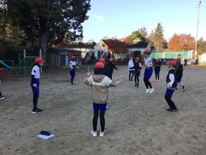 12月2日から、朝の九久っ子タイムになわとび練習が始まりました。軽快なリズムの曲が流れる運動場で、全校児童が短縄を使った個人技の練習に励みます。個人で黙々と練習する子もいれば、数人で輪になって誰が一番長く跳び続けることができるかを競っている子たちもいて、それぞれの目標をもって練習している姿が見られました。これから、なわとびカードの記録更新を目指して、九久っ子タイムや体育の時間、休み時間にも練習に取り組んでいきます。1月のなわとび大会では、学級みんなで長縄の八の字跳びもします。これからたくさん練習して、個人種目、学級種目とも記録を伸ばしていきます。