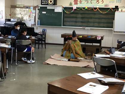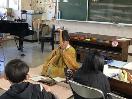 6年生の音楽の教科書には、雅楽「越天楽」がでてきます。12月16日は、講師の方から「雅楽」について学びました。実際に、笙(しょう)、龍笛(りゅうてき)、篳篥(ひちりき)の3つの楽器の音を生で聞き、それぞれの音の出し方や音程の変え方などの特徴を教えていただきました。笙が奏でる和音の美しさ、龍笛の音と共に聞こえる息の音、篳篥の大きな音を体感することできました。これからの時期、お正月の雰囲気にぴったりな雅楽を聞くと、今日の勉強を思い出すことでしょう。