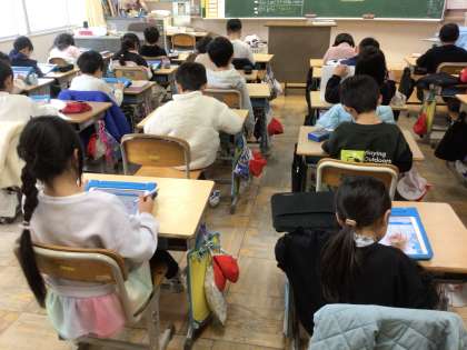 今日は、デジタルシティズンシップ学習として、「みんなが楽しく使えるようなクラスのタブレットルールを考えよう」という内容で、改めてタブレットの正しい使い方を確認しました。タブレットを使い始めて2年経ち、最近の使い方を振り返っていくと、約束事はわかっているけど「これぐらいは、大丈夫かな」という姿があることがわかりました。「先生が話しているときは、タブレットをさわらない」「使わないときは、必ずケースにしまう」「友達のタブレットは、触らない、覗かない」など、クラスのルールを再確認しました。もうすぐ冬休みに入ります。家庭での使い方も改めて確認し、正しく使い、学習に役立てて欲しいです。