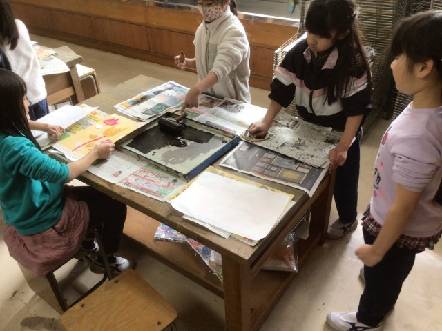 【2年】版画刷りをしました