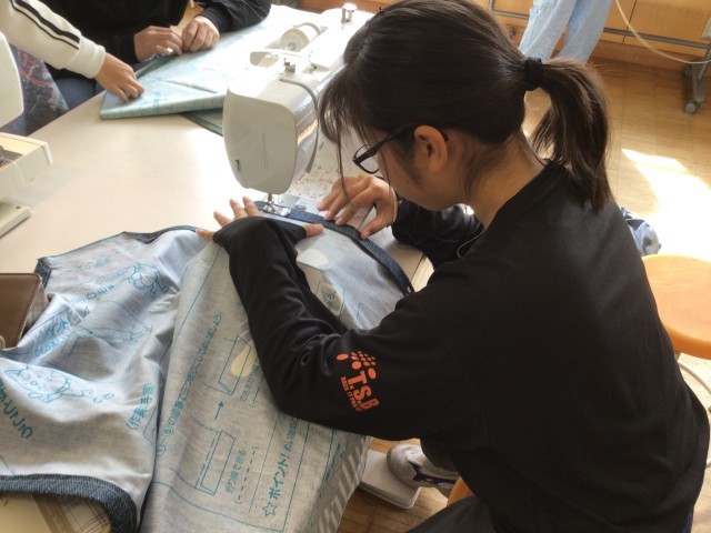 ミシンの基本的な使い方から学び、今ではミシンの糸通しから縫うことまで全て自分たちでできるようになりました。完成が楽しみです。
