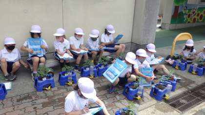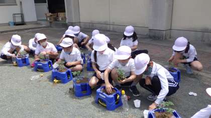 生活科の学習で、ミニトマトの苗を植えました。育てるミニトマトの苗に名前をつけている子もいます。「ミニトマトの実がいっぱいなるといいな。」「元気に育つといいな。」と言いながら植えていました。実ができるのが楽しみです。