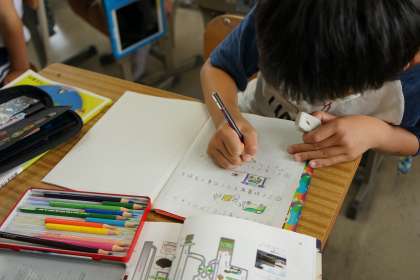 4年3組「もやすごみのゆくえ」ごみステーションの見学で学んだことや、渡刈クリーンセンターのことをノートにまとめました。