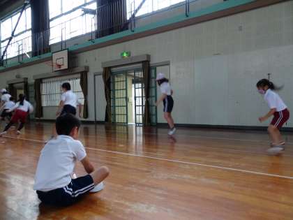 3組は、体力テスト「反復横跳び」の様子です。良い記録が出るように、みんな頑張りました。数のカウントも一生懸命です。