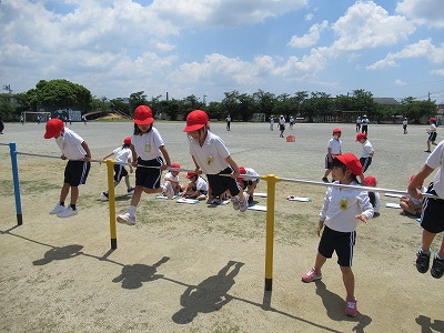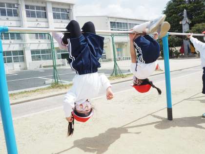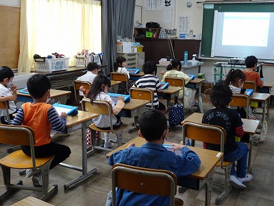 1年生の体育では「てつぼうあそび」が始まりました。楽しく安全にいろいろな技に挑戦することができました。また、今日はタブレットを使った「オンライン朝の会」の練習をしました。画面越しに先生や友達の顔が見えて驚いていましたが、上手に使うことができました。