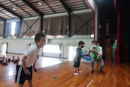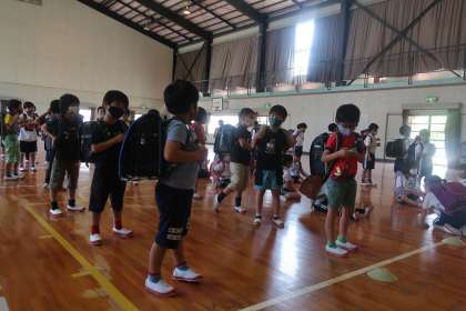 子どもたちは真剣に話を聞き、防犯意識を高めることができました。また、大声を出す練習や、個人で持っている防犯ブザーを実際に鳴らす練習をしました。防犯ブザーについては、持っていなかったり、電池切れや故障で鳴らなかったりするお子さんがいました。今一度、防犯ブザーの確認をしていただければと思います。