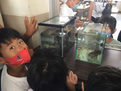 理科の学習で使うメダカがやってきました。水槽の準備や、水の入れ替えを頑張りました。休み時間はメダカをかわいがっています。