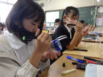 スクールファイヤーに向けて、ペットボトルでキャンドルケースを作りました。切る形を工夫したり、模様を考えたりしてとても素敵な作品ができました。学年掲示板に掲示してありますので、参観日に是非ご覧ください。