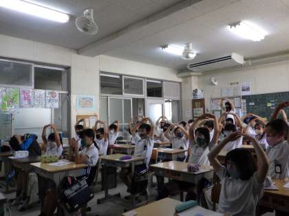 オンライン「夢の教室」でOKサインを出しています。印象に残った言葉は、「あきらめない・マイナスはプラスに変えられる・決意=行動」が多くあがりました。夢に向かって話す児童の真剣な表情が、かっこよかったです。
