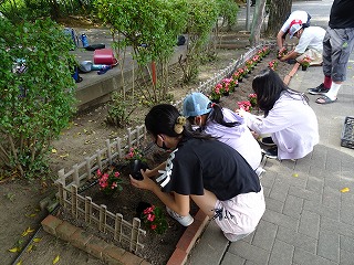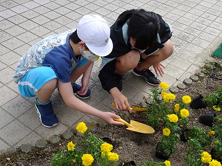 環境委員会の子どもたちが、花壇の整備を行いました。正門付近の花壇には、日日草や、マリーゴールド、ベゴニアがきれいに咲いています。学校にお越しの際は、ぜひご覧ください。