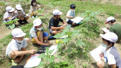 ホウセンカとヒマワリが大きく育ってきました。子どもたちが毎朝水やりをして大切に育てています。最近では、ホウセンカの葉を食べてしまうセスジスズメという蛾の幼虫の駆除も子どもが行っています。きれいな花が咲くのを楽しみにしながら観察とお世話を続けていきたいと思います。