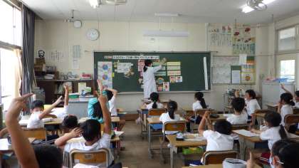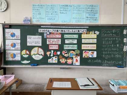 栄養教諭を招き、食に関する指導をしていただきました。「3つのグループの食べ物をバランスよく食べよう」をめあてに、給食の食べ方を振り返りました。苦手な給食を頑張って食べる姿が多くみられるようになりました。
