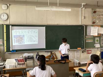 社会科の学習で「あたたかい土地のくらし」「寒い土地のくらし」について学習しました。北海道の生活の工夫や、盛んな産業、雪を生かした観光事業、北海道の伝統文化など様々な視点で、調べ学習を行いました。調べたことをタブレットを使ってまとめ、学級で発表しました。一生懸命発表する姿がとても輝いていました。発表を通して、子どもたちは新しい気付きを得ていました。学習の中で新たな疑問や興味をもち、「いろいろな地域の建物について調べたい」「県ごとの違いをもっと見つけたい」という声を聞くことができました。