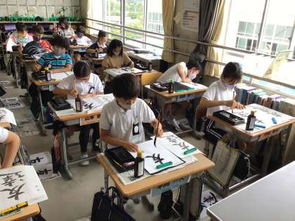 暑い日が続いていますが、そんな中でも、子どもたちは集中して頑張っています。書写の時間に「友達」という字を練習しています。明日はスクールファイヤーです。友達と最高の思い出をつくらせてあげたいです。