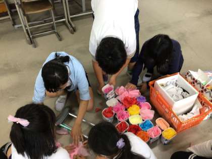 仲間と協力して委員会活動を行っています。環境美化委員会が、再利用できるものを使いやすく整理してくれています。エコな気持ちが前山小学校に広がっていってほしいです。