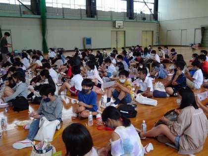 はじめは、防災食作りです。炊飯袋にお米とお水をいれて準備万端!袋がパンパンになってお米がはじけてしまうかも・・・という心配をよそにどの班も上手に炊き上げることができ、おいしいカレーをお腹いっぱい食べました。