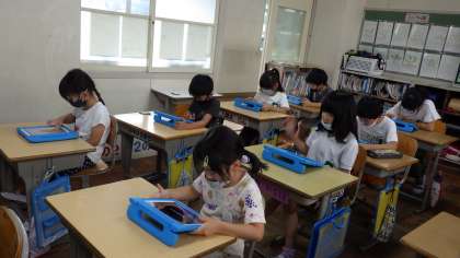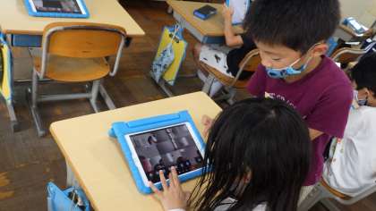 明後日からは、楽しみにしていた夏休みです。タブレットを用いてミニトマト日記を作成します。教室で、やり方の確認を行いました。みんなの日記を楽しみにしています