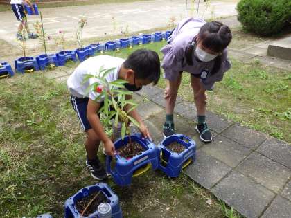 よく見ると、種がついているようです。植物も個々に育ち方が違います。子どもたちも個々のよさを伸ばしていけたらいいと思います。