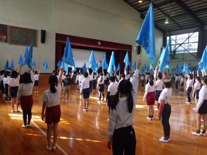 いよいよ今週から運動会の練習が始まりました。高学年は旗を使ったマスゲームと一人技をするスタンツを行います。まだまだ振付を覚えるので精一杯ですが、本番では息の合った高学年らしい演技をしたいと思います。