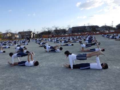 昨年度行うことのできなかったマスゲームやスタンツの技にも戸惑いながらも一生懸命取り組んでいます。成功できない技には、何度も何度も繰り返し挑戦しています。