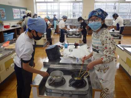 今年度初の調理実習を行いました。感染症対策のため、一人一鍋で味噌汁を作りました。思い思いの具を考えて、初めて作った味噌汁はとてもおいしく感じられたようです。「大根が硬かった…お母さんってすごいんだね…!」といつもご飯を作ってもらってくれていることのありがたみを実感していました。