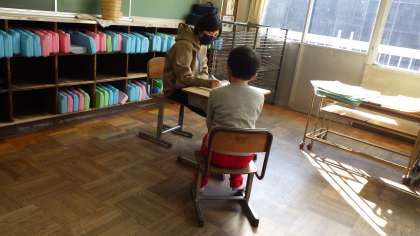 先週から、教育相談を行っています。今、楽しいことや困っていることを担任と話をしました。一対一で話をする機会が少ないので、貴重な時間となりました。教室では、静かに自習をして待つことができ、成長を感じました。