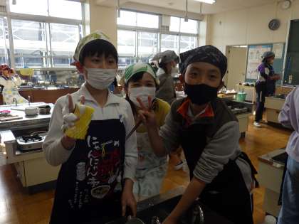 家庭科で5年生初の調理実習を行いました。一人一鍋で味噌汁を作りました。どれ一つとして同じ味噌汁はなく、各家庭やそれぞれの子の好みがあって面白かったです。朝から煮干しで出汁を取り、自分で切った具材を入れ、味噌の風味を大切に火加減を調節した味噌汁は、みんなおいしそうに、よい表情で食べていました。