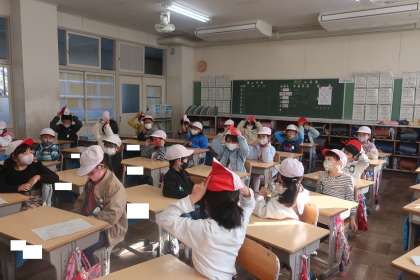 教室で赤白帽子をかぶっていますが、先週の金曜日に行われた前小のつどいの体育委員会の発表で、オリンピッククイズが出題されたときの様子です。3択クイズで、赤、白、ウルトラマンの帽子でクイズに答えます。ウルトラマンの帽子にしたくて、うずうずしている子がとても多かったような…。楽しく前小のつどいに参加することができました。