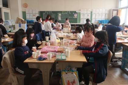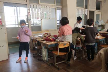 2枚目、3枚目の写真は、生活科「おもちゃまつり」のおもちゃ作りの様子です。1年生に楽しんでもらうためのおもちゃを作っています。完成まではまだまだ時間がかかりそうですが、すてきなおもちゃを届けるために今後も活動を続けていく予定です。