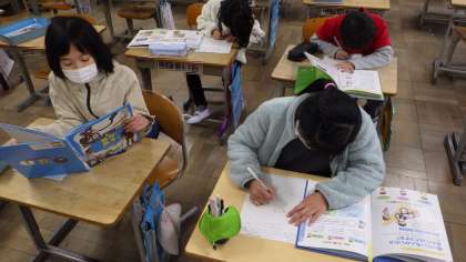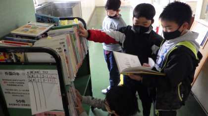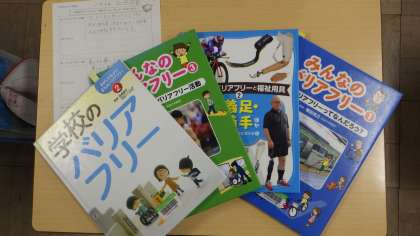 現在、3年生の総合的な学習では、福祉についてまとめる勉強をしています。今年度行った福祉実践教室や高齢者体験からさらに調べたいことを決め、本やインターネットで調べ学習をしています。街中で困っている人をどう助けられるかを調べたいという児童が多く、感心させられます。