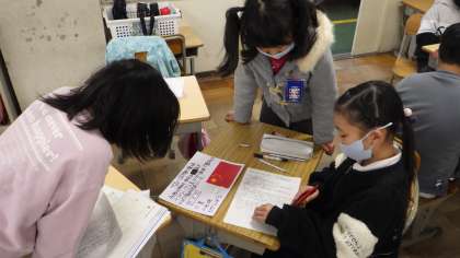 国語科「外国のことをしょうかいしよう」の学習で、外国についての知りたいことを調べてまとめ、発表に向けて準備しています。本やタブレットを有効的に活用して資料を集めたり、原稿を読むときに意識したいことを話し合ったりと、一生懸命に取り組んでいます。
