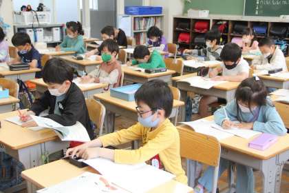国語科「すきな こと、なあに」では、教科書のモデル文から、友達と楽しく会話をする工夫について考えました。