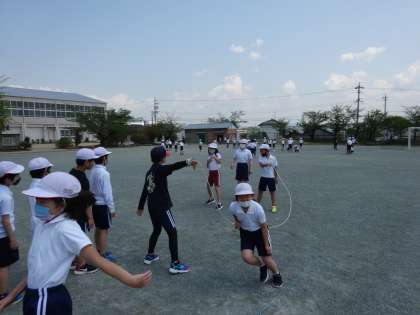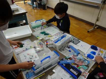 新しいクラスになり、約2週間になりました。体育では大繩をしました。みんなで声を合わせて、楽しそうに跳ぶことができました。図工の学習では、吹き流し、スタンピングという技法を使って楽しく作品を作っていました。書写の学習では、習字道具の準備の仕方や筆の使い方などを学習しました。どの授業でも、新しい仲間と協力して真剣に取り組んでいます。